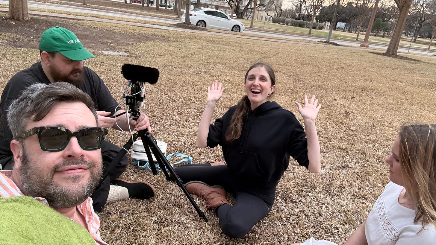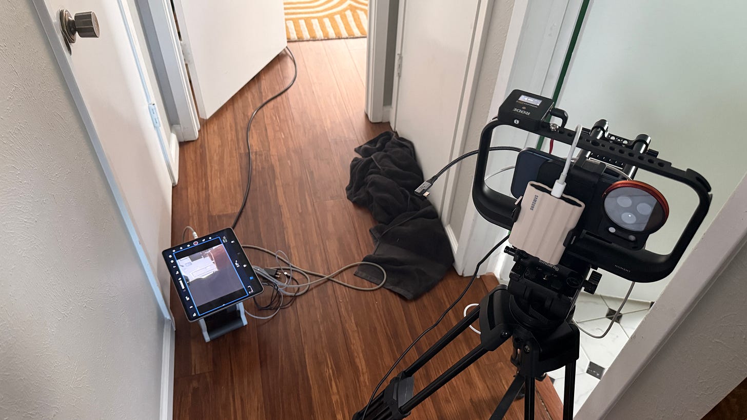 I recently acted in and produced a no-budget (…okay under $5k) feature film in Denton, Texas. We shot the film in a rental house in 6 days, on an Iphone 16/17. The film features a cast of three (me, being one of them), under the direction and lens of my buddy Joshua Labure (“In a good Way”, “Twenties”). We have had long talks about this film for a few months now and flew in from various ends of the country, one actress came from LA and I, from New York. Josh is based in Omaha. We approached the details with an open mind and a desire to discover something unexpected excavated from our collective unconscious. There is something about gathering in a new place with new friends, that awakens the creative soul. The “creative bubble” blossoms from a simple desire to just make some weirdo art together. After a productive but not exhausting week, I’m happy to report that the future of indie or NonDē or arthouse or mumblecore or no-budge or DIY or Punk Rock filmmaking…is alive and well. And for the purpose of this exploration, we are calling our process, SLIPPER CINEMA….let me explain: